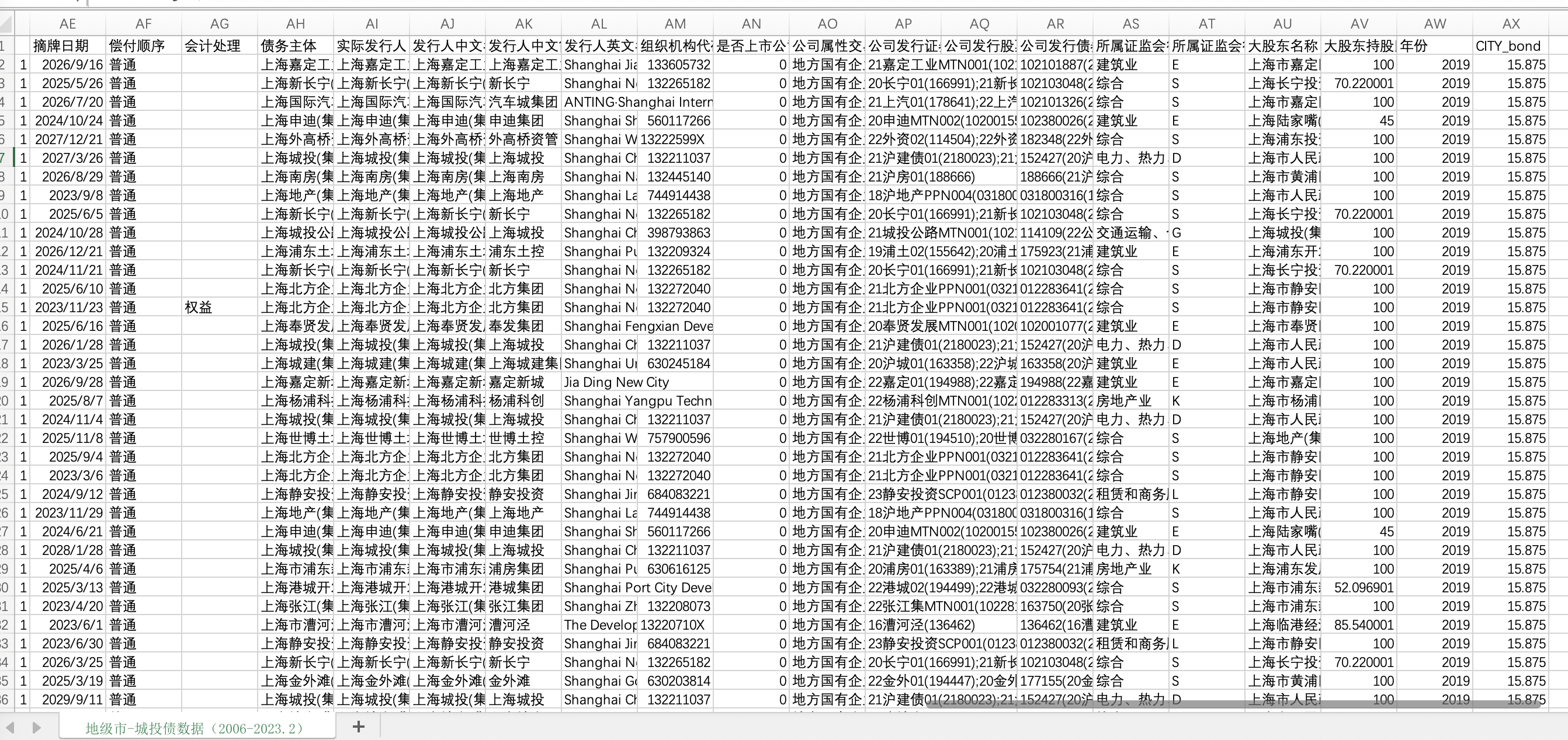 地级市城投债数据是关于各地级市发行的城市投资建设项目资金债券的统计数据。这些数据对于研究者来说有着一定的参考价值: