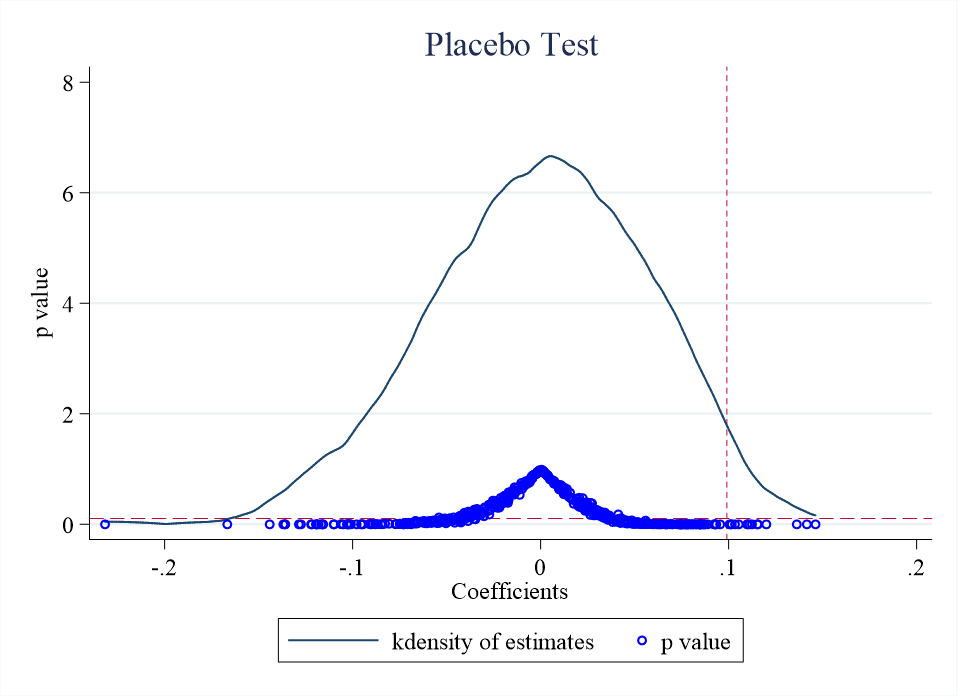 oliyiyi 发表于 2023-11-2 13:56 要点: 图中每个点表示一次placebo test的效应系数估计值。 这些 placebo 效应系数是否集中在0附近,如果 ...