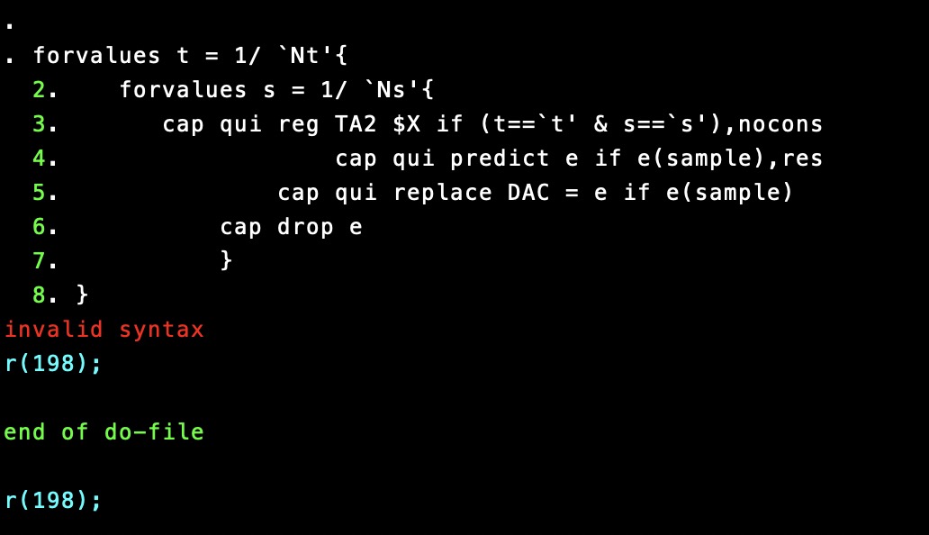 各位大神好,出发点是想做应计盈余管理的,也是参考了一位up主的代码,可是到了循环语句这里怎么都显示不正确,请各位帮忙扫几眼看看到底是哪里出现了语法问题,多谢!