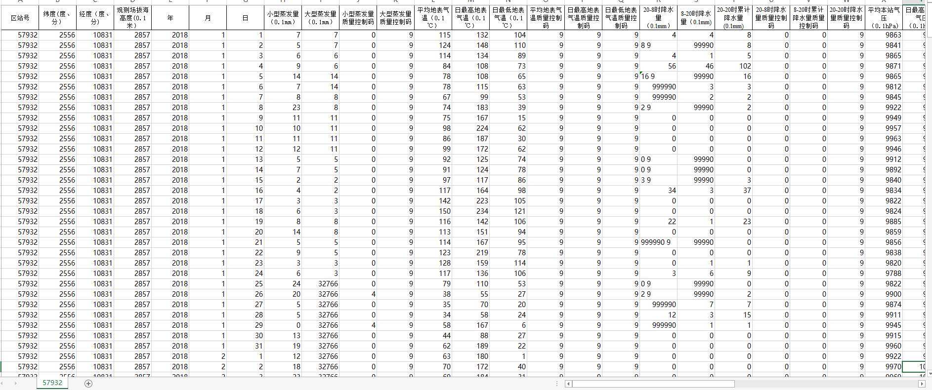 | 日最高本站气压质量控制码 |