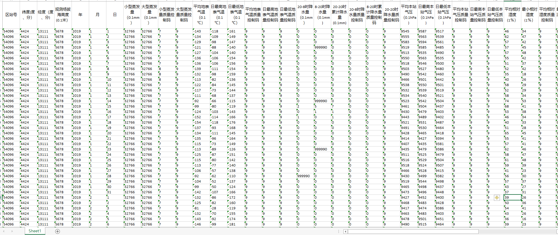 | 日最高本站气压质量控制码 |