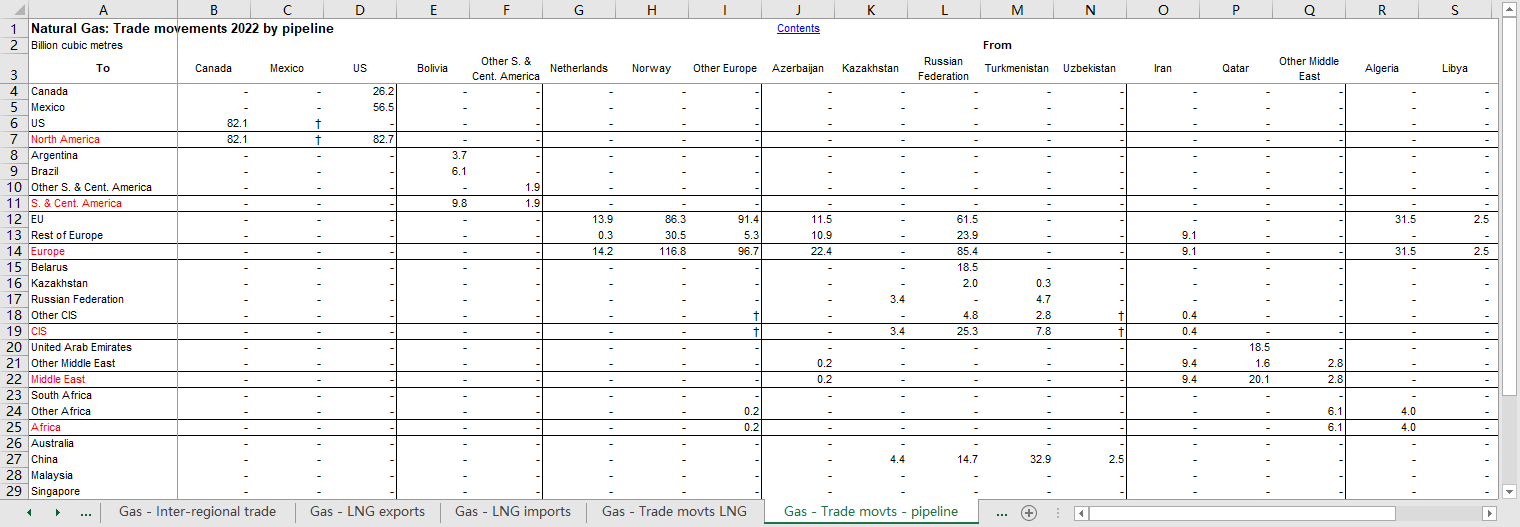 天然气:区域间贸易2000-2022