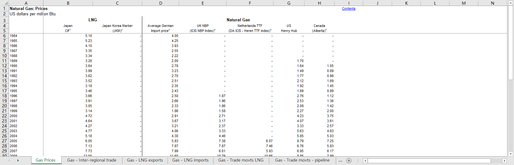 全球世界各国2000-2022天然气价格LNG液化天然气进口出口贸易动态流动管道