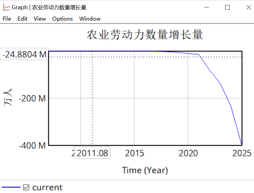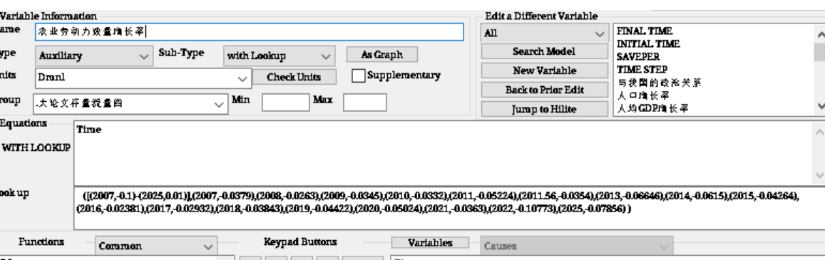 使用withlookup函数为农业劳动力增长率赋值,如图,跑出来的graph前半段很平,并且和实际值不符,不知道问题出在哪里