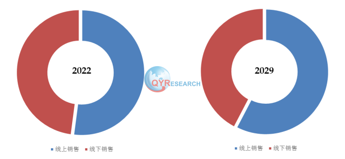 就产品类型而言,目前线上销售是最主要的销售渠道,2022年占据大约54%的份额。