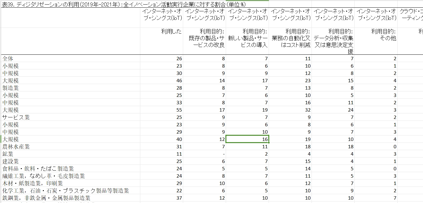 数据包括日本不同规模不同行业企业数字化利用情况