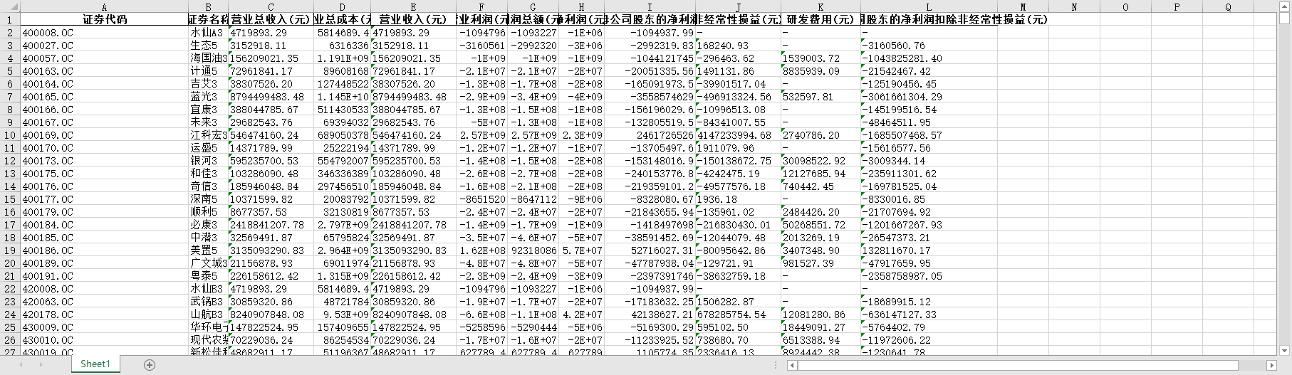 证券代码        证券名称        营业总收入(元)        营业总成本(元)        营业收入(元)        营业利润(元)        利润总额(元)        净利润(元)        归属母公司股东的净利润(元)        非经常性损益(元)        研发费用(元)        归属母公司股东的净利润扣除非经常性损益(元)