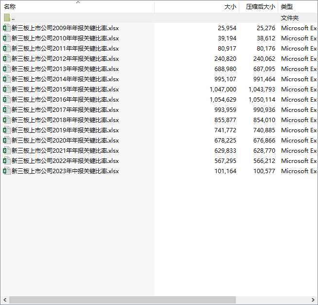 新三板上市公司2009-2023资产负债利润现金流量关键比率每股指标同比增长率简表