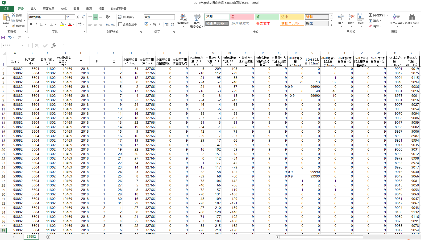 注意:气象数据往往存在着一定时间的缺失,可能是观测仪器暂时的故障,也可能是人为原因造成的。