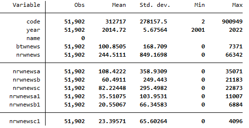 网络财经新闻报道 01-22.dta 描述性统计