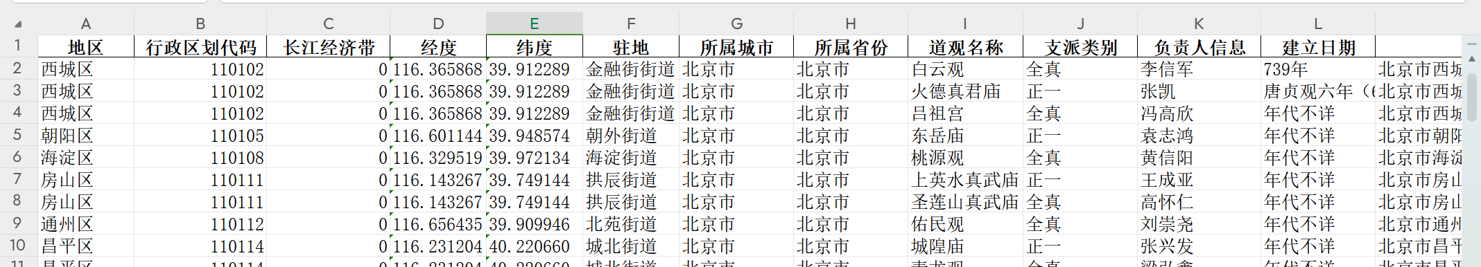 指标包括:地区 行政区划代码 所属省份 所属城市 长江经济带 经度 纬度 驻地 姓名 事迹 称号