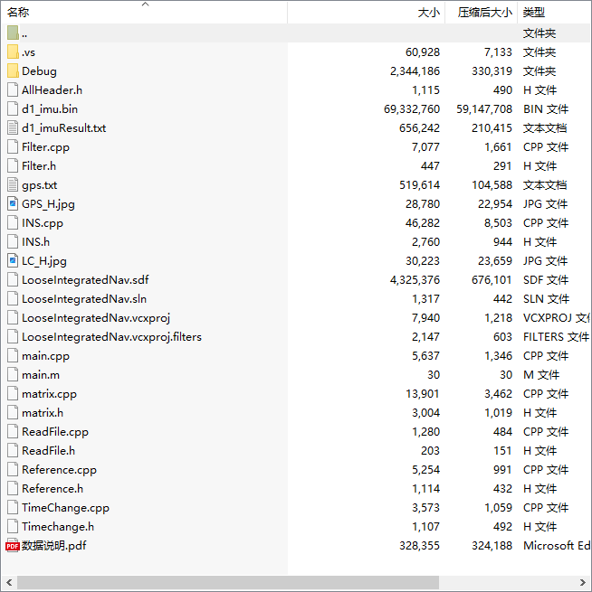 GNSS+INS松组合数据+CPP代码C语言程序源代码