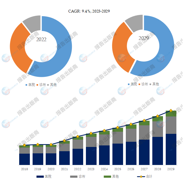 就产品类型而言,目前医院是最主要的需求来源,占据大约58%的份额。