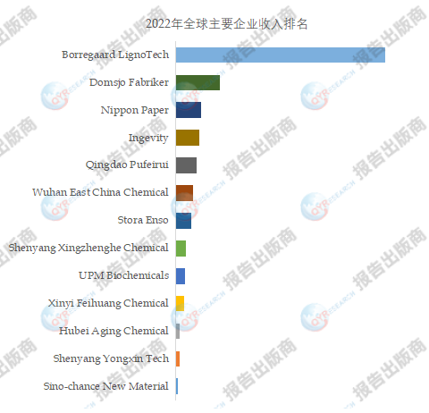 全球范围内,木质素主要生产商包括Domsjo Fabriker, Borregaard LignoTech、等,其中前五大厂商占有大约73.77%的市场份额。