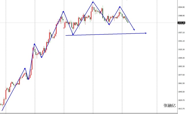 昨日黄金市场平开在1992区域遇阻回撤,最低点触及1977美元收盘,日线级别收录一根大阴线,高价没有破前高,低价下破前低,出现了落尾走势,黄金在2009-2004区域形成了一个双顶的震荡区间,在两次向上涨之后,形成了上影线,进一步反应了该水平阻力位明显,下方1960区域形成平台支撑,进一步下破后空头主力将延续。四小时级别上看,布林带已经明显的收口迹象,均线系统粘连运行,有进一步发散的概率,昨日大阴线打压,黄金看跌的情绪略增加。综合以上分析,张融亿认为:黄金冲高遇阻,多头逐步减少,后市操作上考虑反弹做空为主,低多为辅,上方关注1984-1989美元阻力,下方关注1960-1953美元支撑。