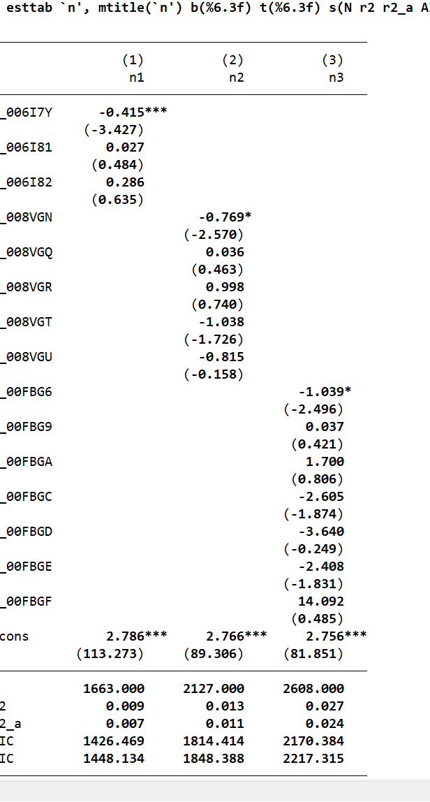 用了连玉君的方法,但不知道跑出来的结果中最左边的变量是什么意思,有友友解答吗