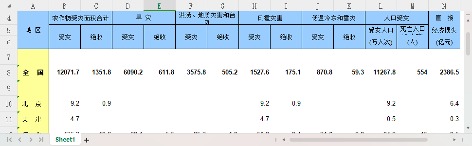 8-26 全国31个省份分地区自然灾害损失情况(全国与各省级指标,2010-2022)