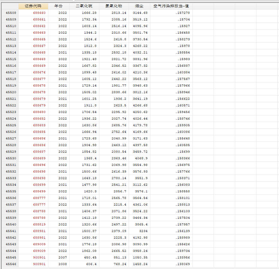 上市企业污染排放(2007-2022)、水污染排放、空气污染排放、总污染排放、面板数据、excel或stata