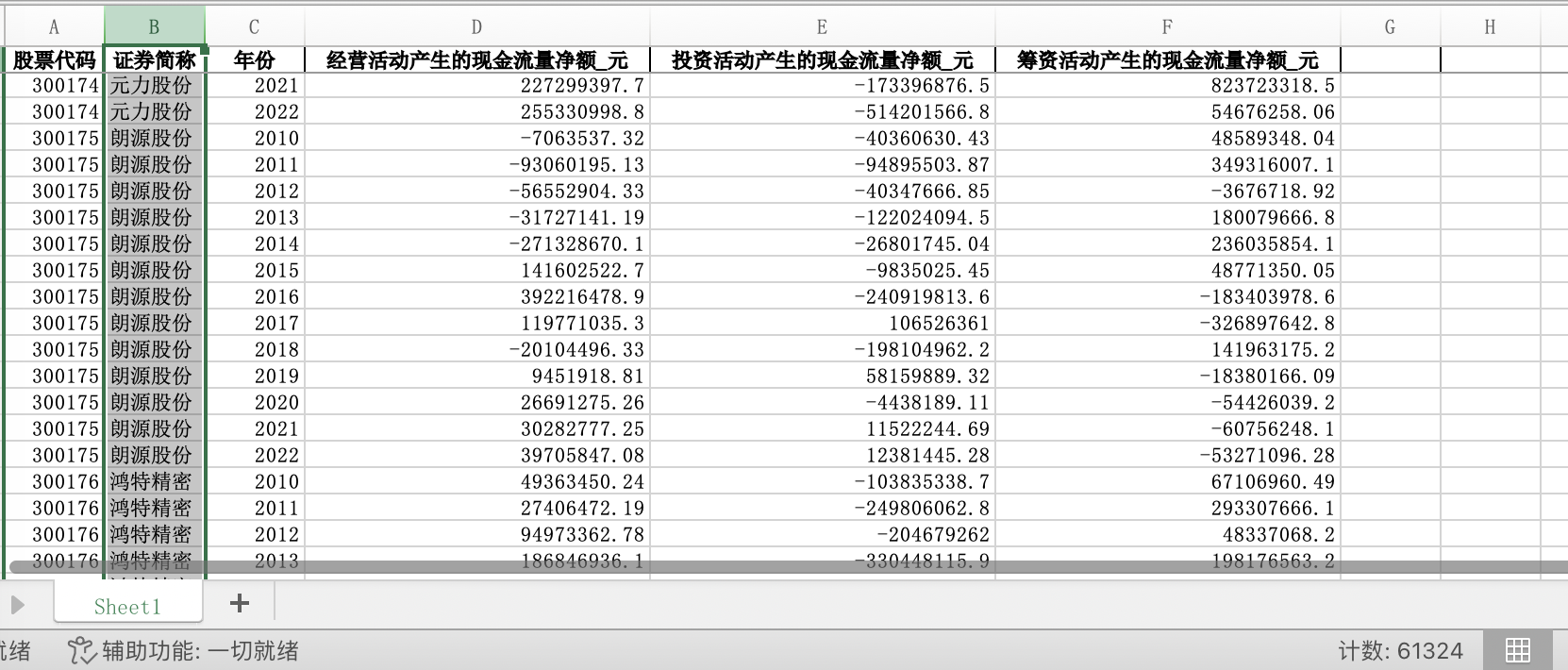 包括:股票代码 证券简称 年份 经营活动产生的现金流量净额 投资活动产生的现金流量净额 筹资活动产生的现金流量净额 所处时期