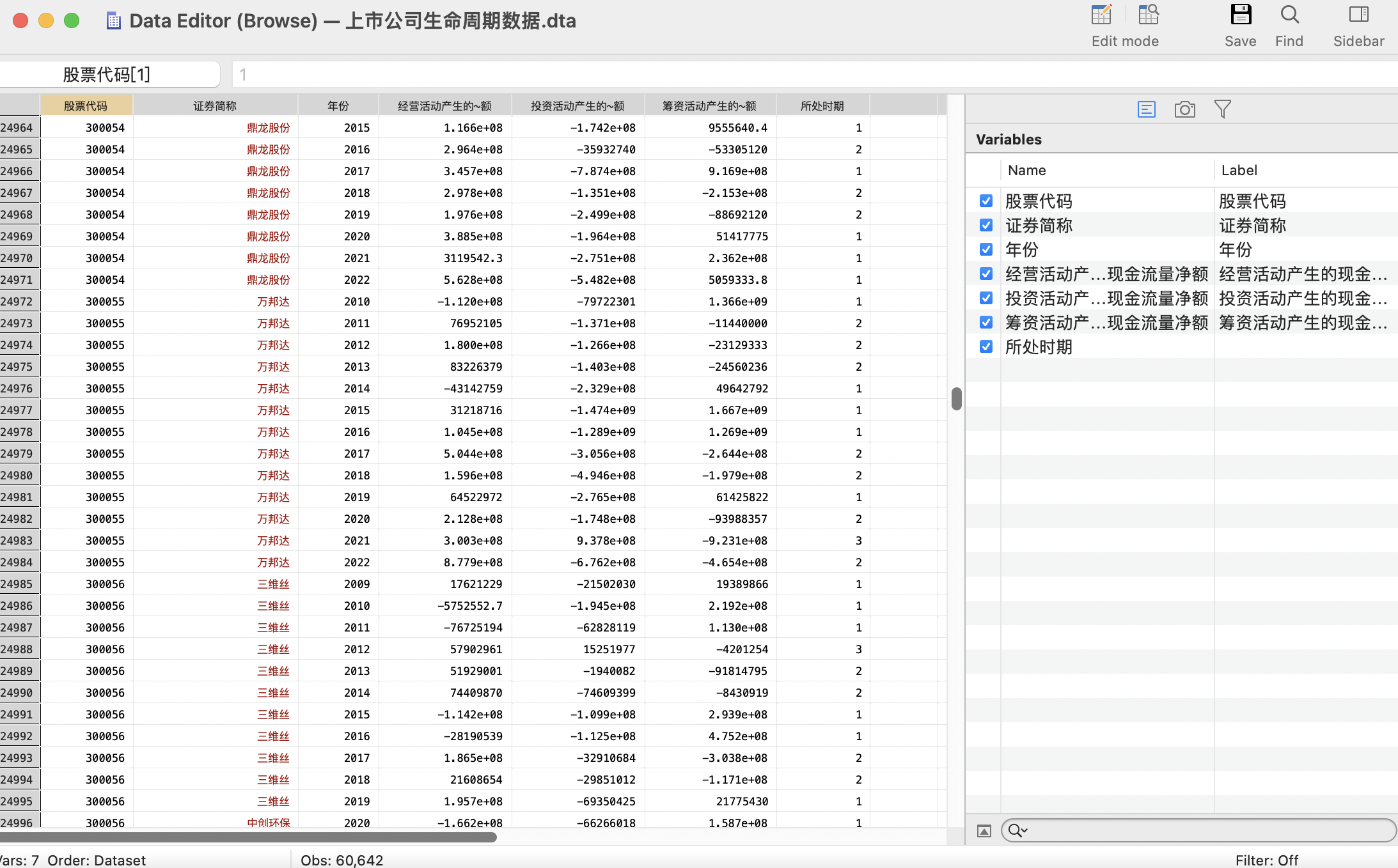 2、上市公司生命周期测算结果数据:(excel+dta)