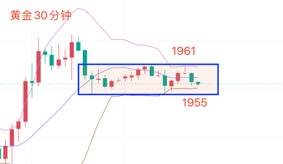 黄金,1961-55的区间观望,突破区间跟进就行。