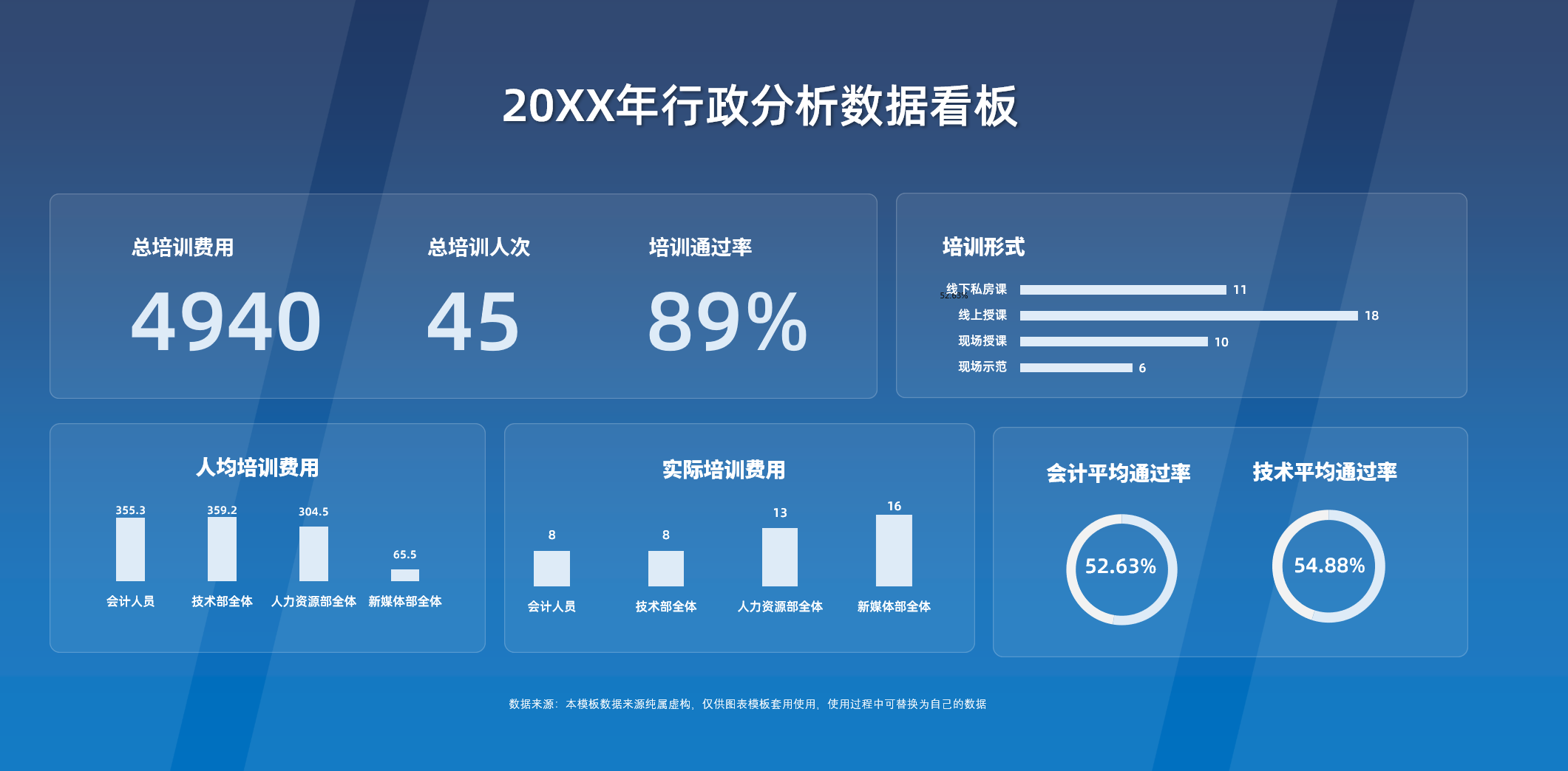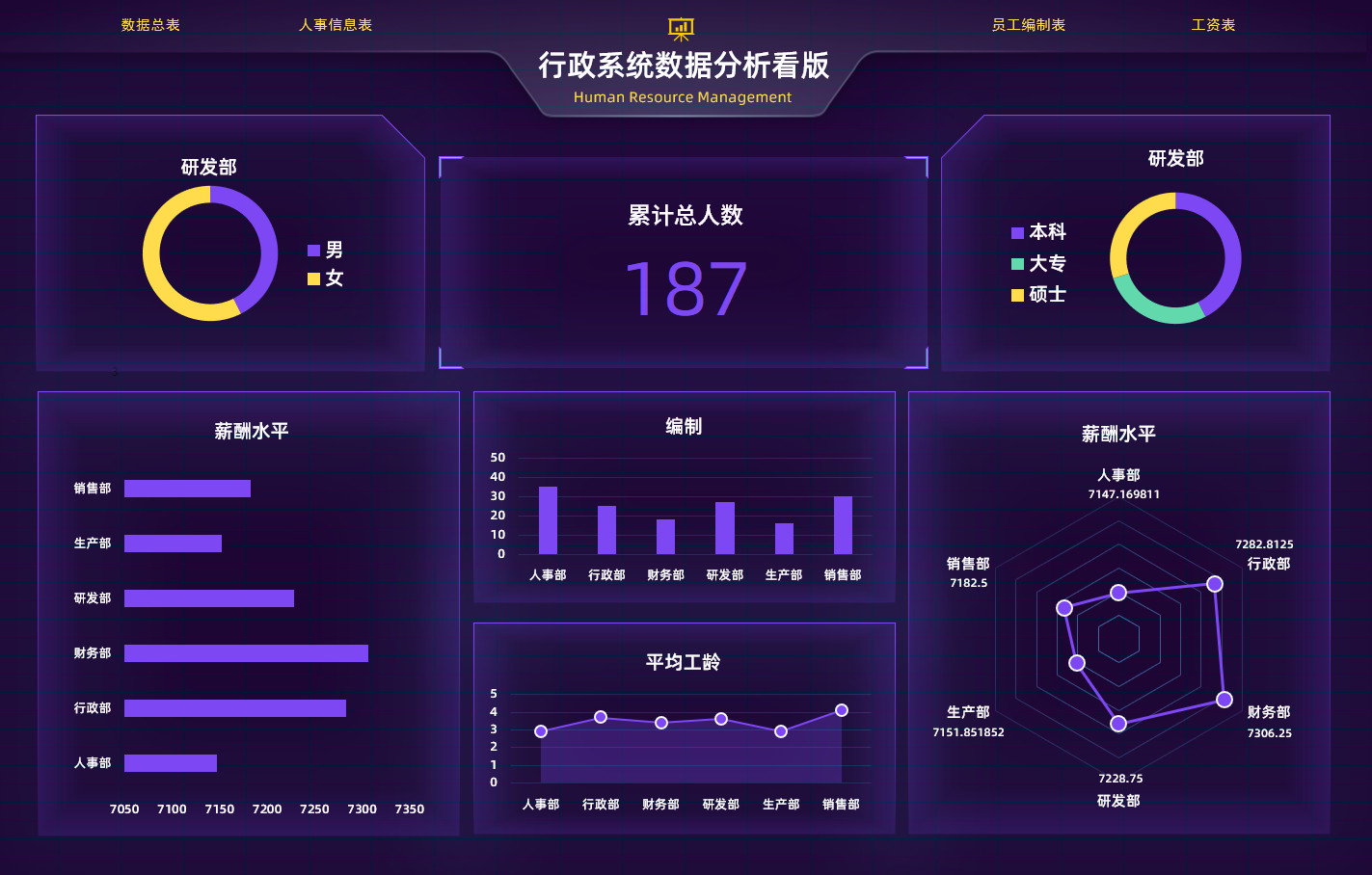 行政数据分析看板15套Excel模板销售培训收入支出薪酬工龄人均增长率等