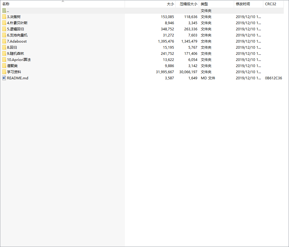 机器学习程序源代码,包含决策树朴素贝叶斯Logistic回归支持向量机随机森林关联规则等算法.zip