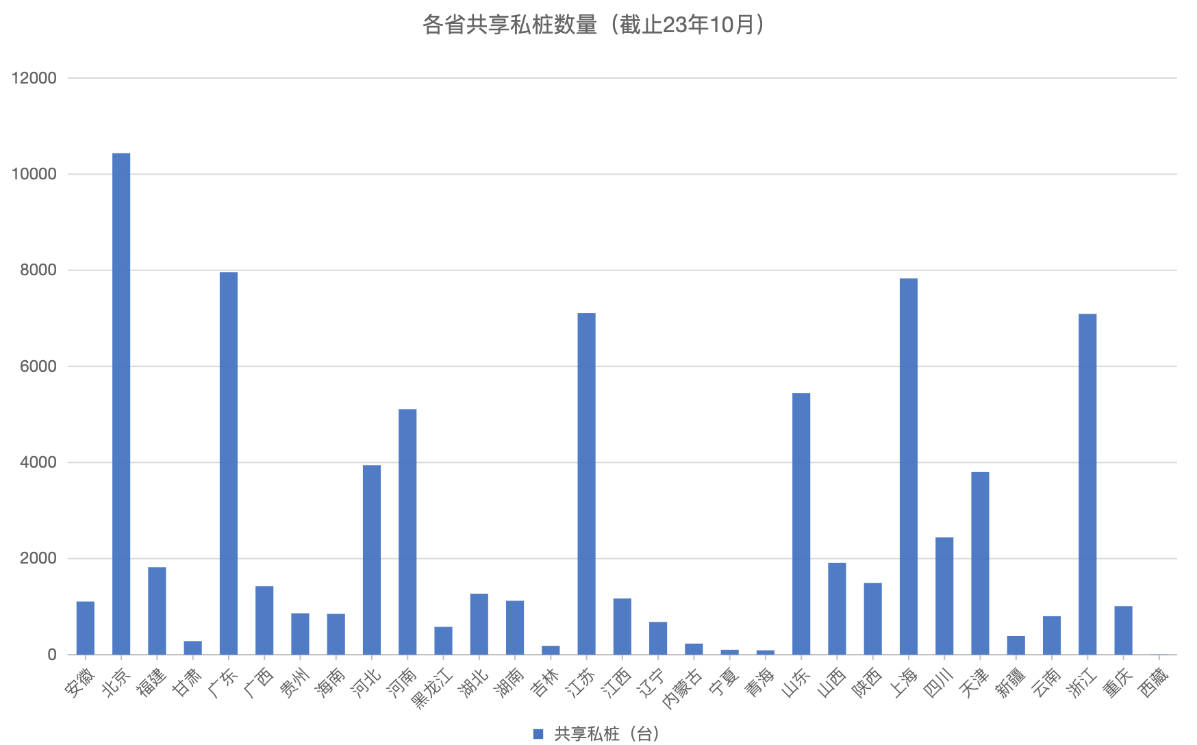 各省份共享私桩保有量
