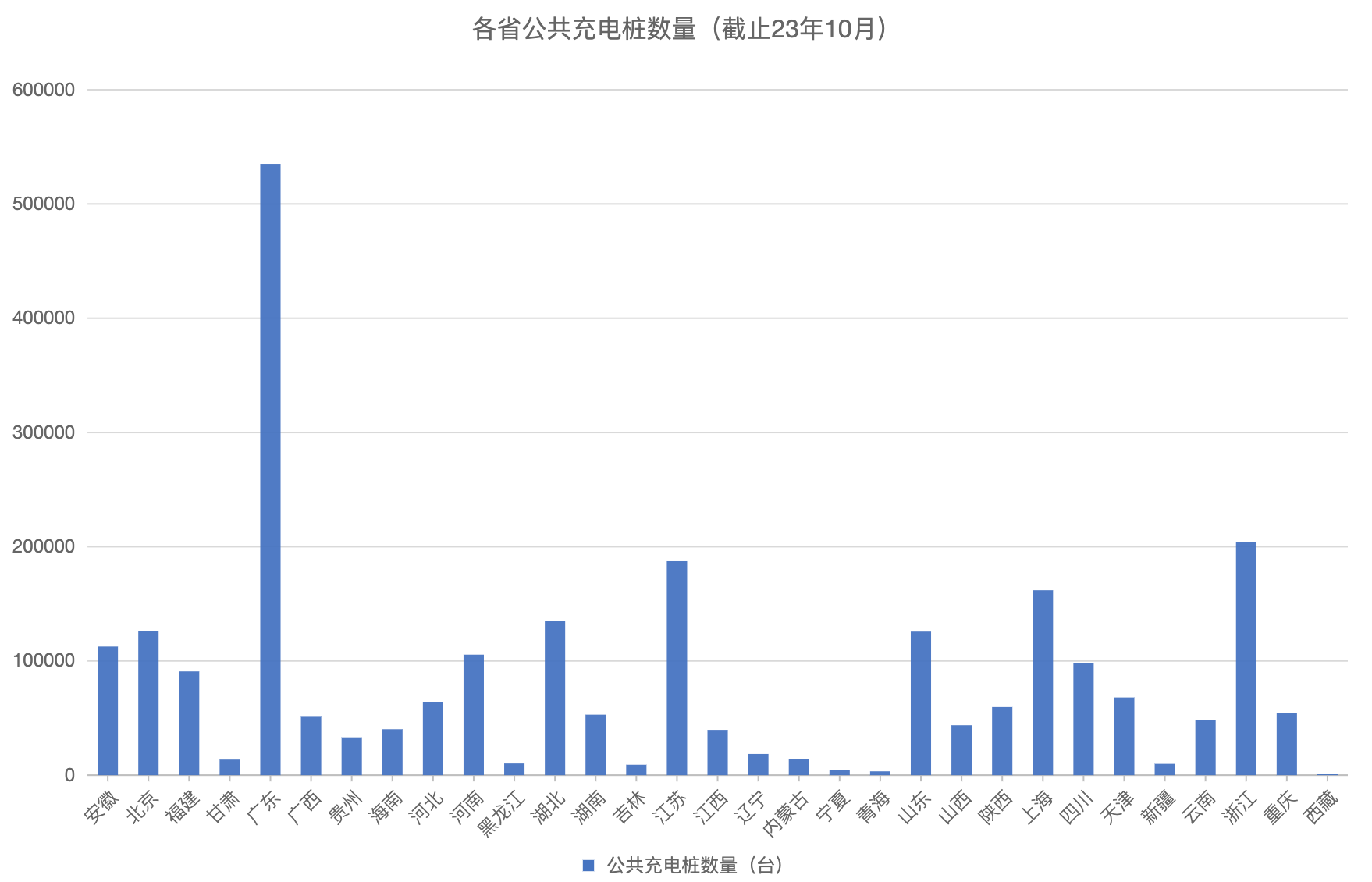 各省份公共充电桩保有量