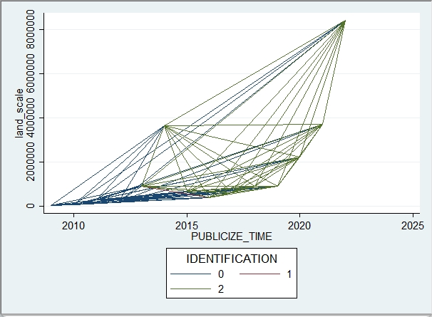 bytwoway(line land_scale publicize_time, sort ),by(identification)