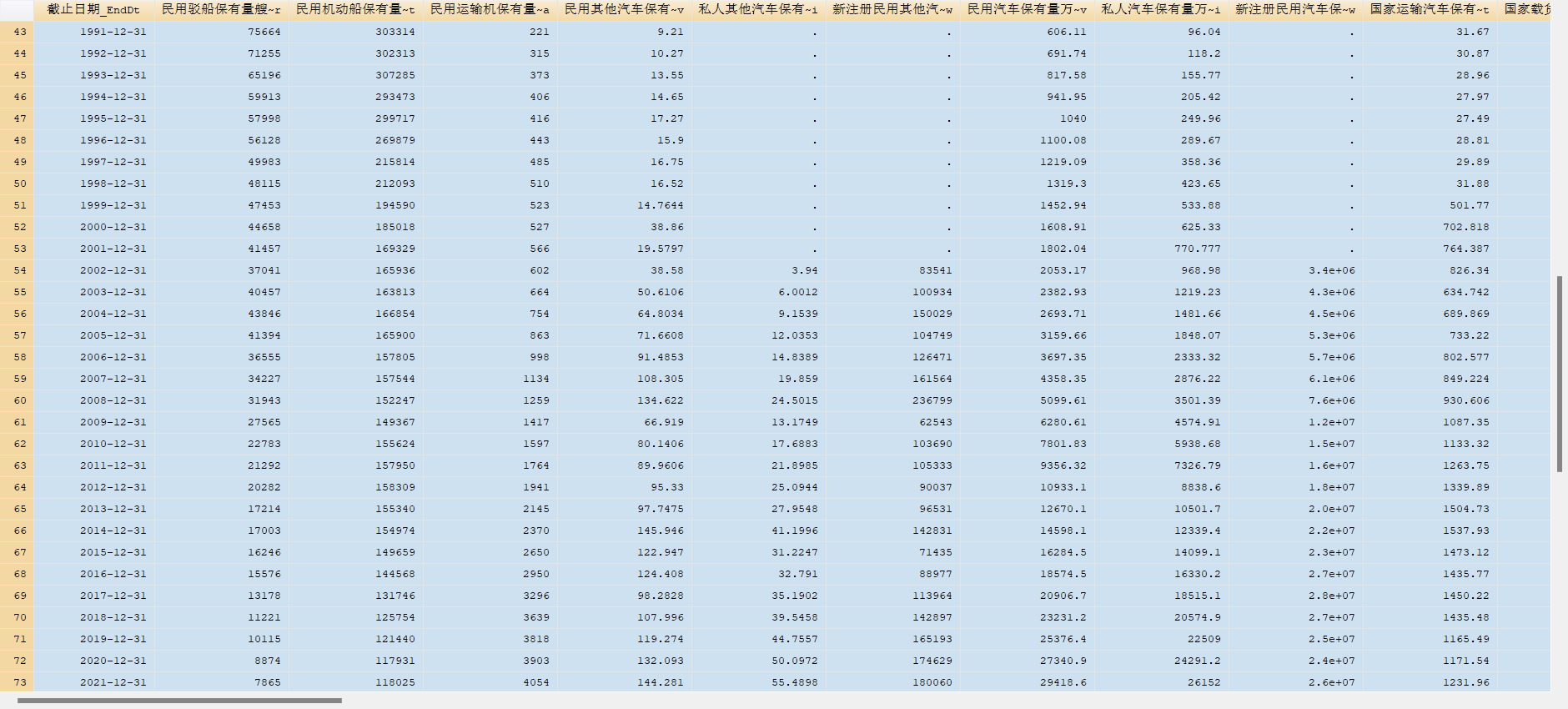 交通运输设备保有量、轮船保有量、汽车保有量、运输机保有量(1949-2022)excel或stata