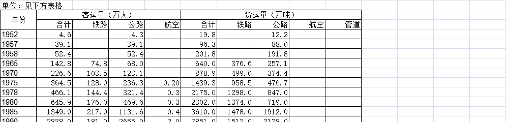 该数据包含了截至2020年宁夏自治区主要年份客货运输量。1952客运量合计4.6万人。