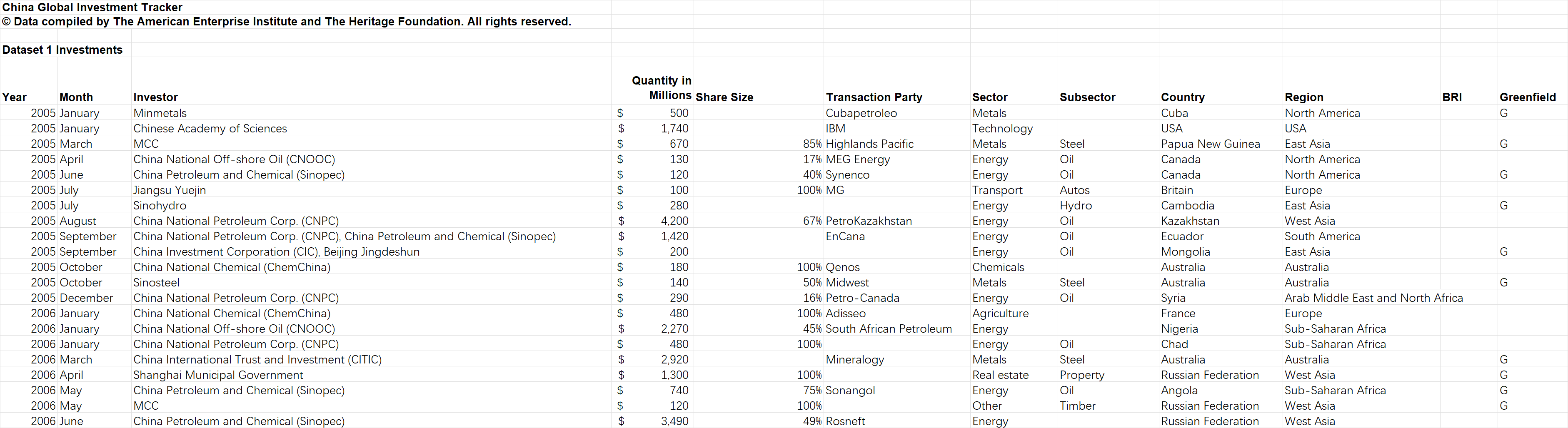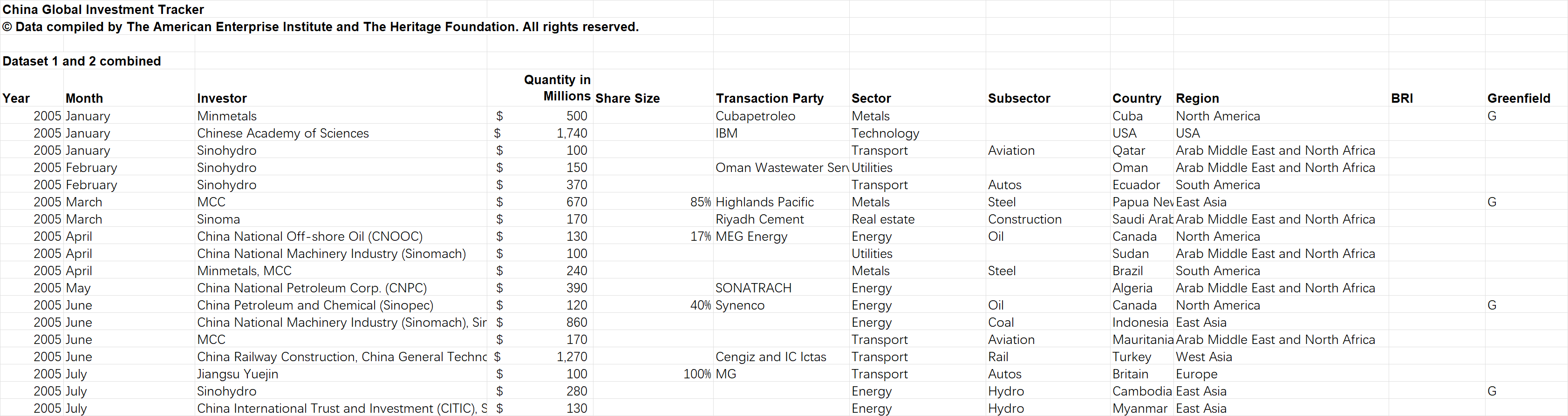 中国在全球范围内的投资活动已经持续增长,并成为全球最大的国际投资来源之一。中国的全球投资包括多个领域,如制造业、基础设施、科技、房地产等。以下是一些关于中国全球投资的一般趋势和重要信息:对外直接投资(FDI):中国的FDI已经不断增长,尤其是在一带一路倡议的推动下。中国企业在能源、交通、通信和其他领域进行了大规模的国际投资。房地产投资:中国投资者经常在全球范围内购买房地产,包括商业和住宅物业。一些大型中国开发商也在海外开发大型住宅和商业项目。科技和创新投资:中国公司积极参与全球科技和创新领域的投资。这包括投资初创企业、技术合作和研发中心的设立。资源和基础设施:中国企业也在全球范围内投资资源开发和基础设施项目,如矿业、港口、铁路和能源。 一带一路倡议:一带一路倡议是中国政府提出的重要战略,旨在推动基础设施建设和贸易便利化。该倡议吸引了中国企业参与全球各地的大型项目。政策和监管:中国政府不断改善对中国企业在国际市场上的监管和支持政策,以促进更多的全球投资。需要注意的是,全球投资涉及复杂的政治、经济和法律因素,因此中国企业在海外投资时通常需要仔细考虑风险和合规性问题。此外,中国的全球投资活动也受到国际社会和各国政府的关注和审查。因此,投资者和企业应当密切关注相关法规和政策变化。《中国全球投资追踪》是由美国企业研究所(American Enterprise Institute,AEI)编制的一份全面的数据库,专注于记录中国在全球范围内的投资和合同(不包括债券)。详细追踪了中国的海外直接投资(ODI)以及建筑合同。
