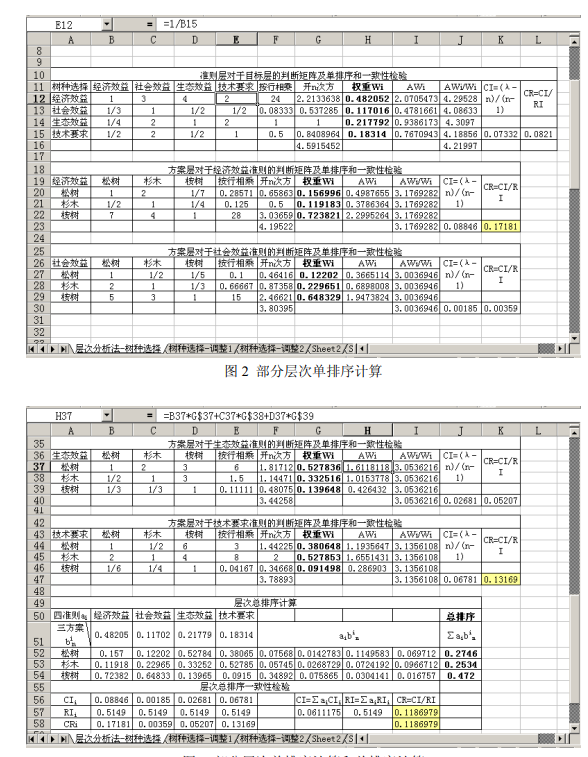 用电子表格Excel实现层次分析法AHP的简捷计算自动计算公式