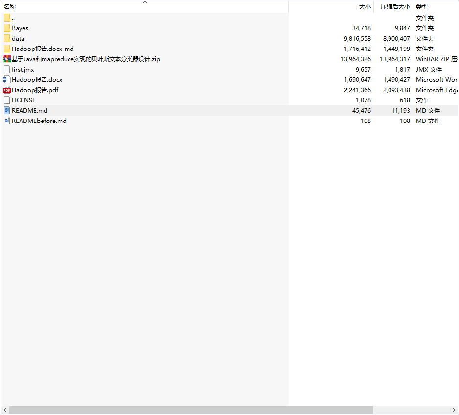 Hadoop课程设计-基于Java和mapreduce实现的贝叶斯文本分类器设计程序源代码及说明