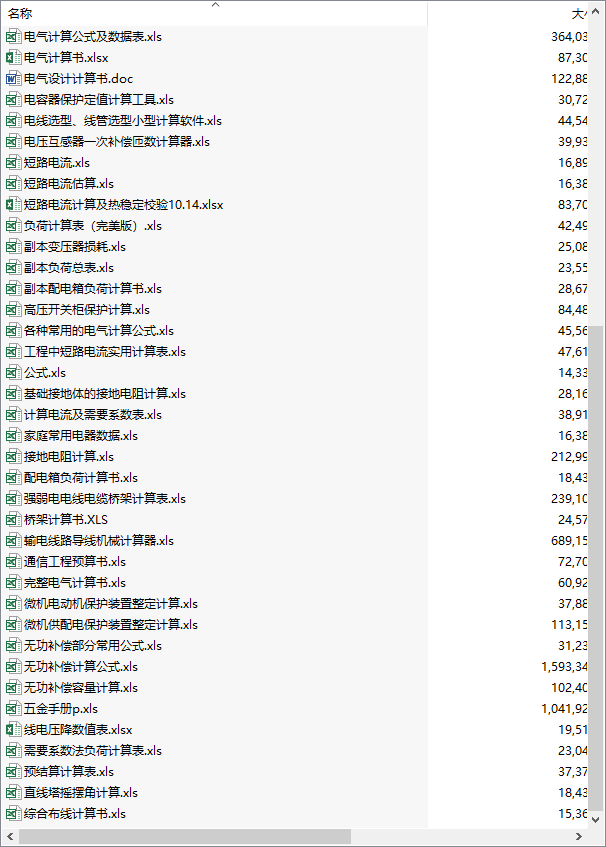 61个全电力行业计算EXCEL表格汇总短路保护电气安装压降低电压负荷电抗电线选型高压开关通信工程计算无功补偿电容器保护等等