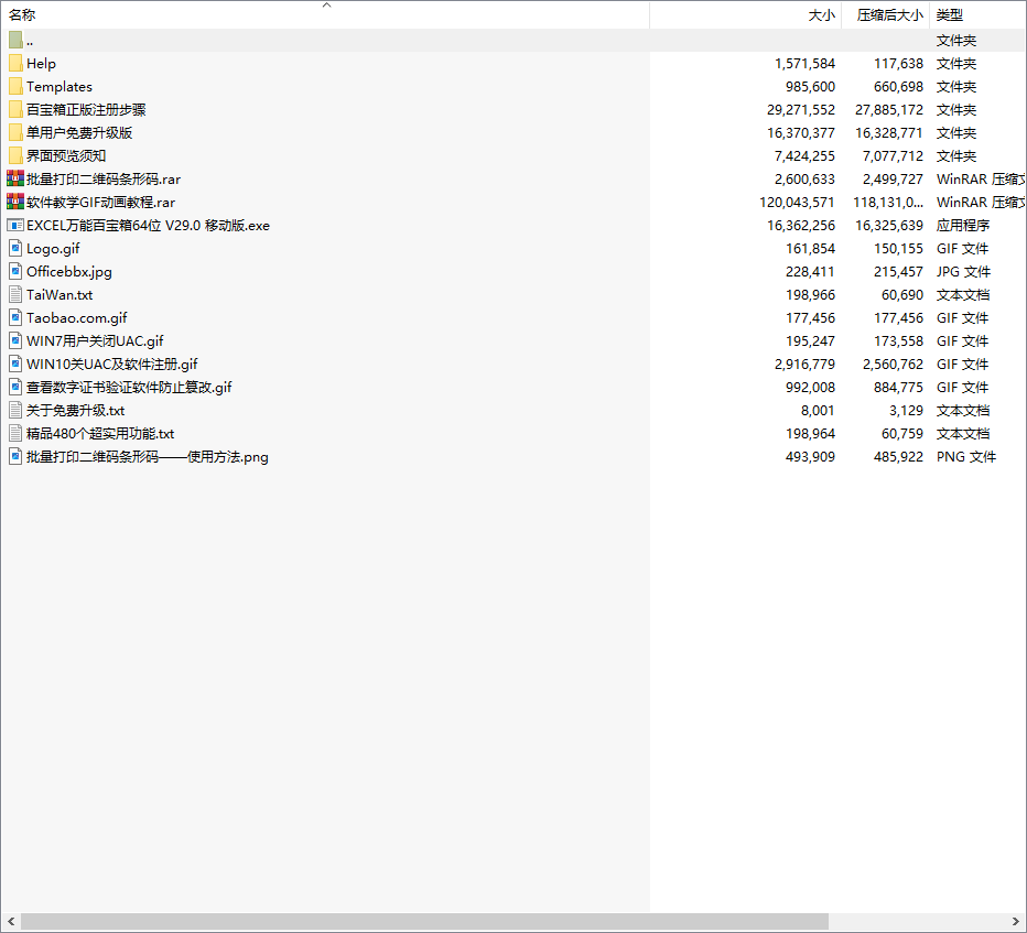 Excel万能百宝箱64位 是著名微软办公软件EXCEL(Microsoft Office for EXCEL)超大型插件。内置了图片百宝箱、财务百宝箱、函数百宝箱、二维码百宝箱。包括280以上个菜单功能和200个增益实用函数,集480个宝贝于一身,但体积小于30MB。当安装万能百宝箱后,如果您使用Excel 2003,则将产生【万能百宝箱】菜单,包括280个以上菜单;如果您使用Excel 2013或者2016,将产生【经典】与【万能百宝箱】功能区。根据各功能的特点,对子菜单作了18个分类, 并Excel函数基础上扩展新增200个实用新的函数,用于增益Excel的扩展功能。且所有功能都通用于Excel 2003、2007和2010、2013、2016、Excel2019。支持中英文显示与繁简体操作系统、拥有30多款华丽的皮肤界面,支持Excel2010全面隐藏选项卡,这个插件还前承了Excel2003经典样式菜单,目的是方便那些从Excel2003转向使用2007或2013版的朋友熟练使用。兼并了ExcelTabs工作薄多标签插件,方便在不同工作薄中切换与使用。跨工作薄存储格逐步提示输入功能让你录入数据更轻松。图片批量尺寸及嵌表格式导图、导入多列图片具备18项可设置参数,多达80种组合导入方式,满足各行业不同需求的图片导入导出与规范排版。表达式计算精灵让数学函数及复杂公式表达式全自动计算一切变得那么轻巧与高效,且能与EXCEL智能交互操作。工程解密功能可以解除VBA工程不可查看的EXCEL工程文档,解除后重新打开文档可100%准确还原源代码,结合Office编程百宝箱成为VBA开发者的必备利器。更内置了比Vlookup()函数更强大且好用的VlookupIn()函数。能对VBA宏程式能实现撤销与还原操作,防止鼠标误点功能与误操作。在EXCEL另存DBF功能的基础上还可以轻松实现对所有SQL数据库(*.DBF)文件进行加密或解密操作,防止重要内容不被随意读写操作。全能语音朗读器具备英语学习复读机的功效可重复及延时朗读。存储格朗读机即时响应按回车时朗读指定的或偏移行列的存储格内容。原创批量图片排序功能,誉为“图片排序大师”,有21种样式可选,能批量将工作表中指定存储格范围的图片快速排序并输出到新表中。支持XP至WIN10多个操作系统完美兼容,实现无缝隙对接,U盘版用户除了在原有可换机使用的基础上,实现XP/WIN7/WIN8/WIN10通行无阻。批量打印二维码与条形码、批量二维码识别(可带Logo)、批量二维码生成(可带Logo)、批量制作出货单标签、销售单标签、盘点标签之打印二维码、条形码等、依据模板一次性可以制作成千上百个二维码或条形码。表格数据汇总、全自动检索录入、数据采集大师、批量改图片大小、批量图片导入、批量图片导出、批量导图入批注、图片查询、截长图与分页截图、批量图片排序大师、批量图片格式转换、批量文字水印与Logo水印、批量取图片敏感信息、身份证验证、银行卡较验升级、取相同项与不同项、提取唯一值、取选区唯一值、智能填充、行列着色、背景着色、身份证验证、度量衡实时转换、批量改文件时间等等功能一应俱全等等功能一应俱全,每款功能千锤百炼。单机版与移动版产品均已实现注册码一码三用,可同时用于《EXCEL万能百宝箱》32位与64位以及《WPS万能百宝箱》。由全球顶尖级水平微软MVP专家与财会管理信息团队历时十年以上开发,是与EXCEL用户与爱好者共同努力的结晶,被誉为"全能的办公瑞士军刀"。适合办公文员、办公白领实现智能轻松办公。单机版产品已实现注册码一码二用,一码可以同时用于《EXCEL万能百宝箱》与《WPS万能百宝箱》。 USB盘移动版1用户不限电脑台数安装台数,任一台电脑均可用(推荐用金士顿U盘)。此版本比上一版本更新了多达40多项功能完善,批量制作、生成、打印二维码条形码,十倍地提升工作效率,物超所值,值得收藏了。。。