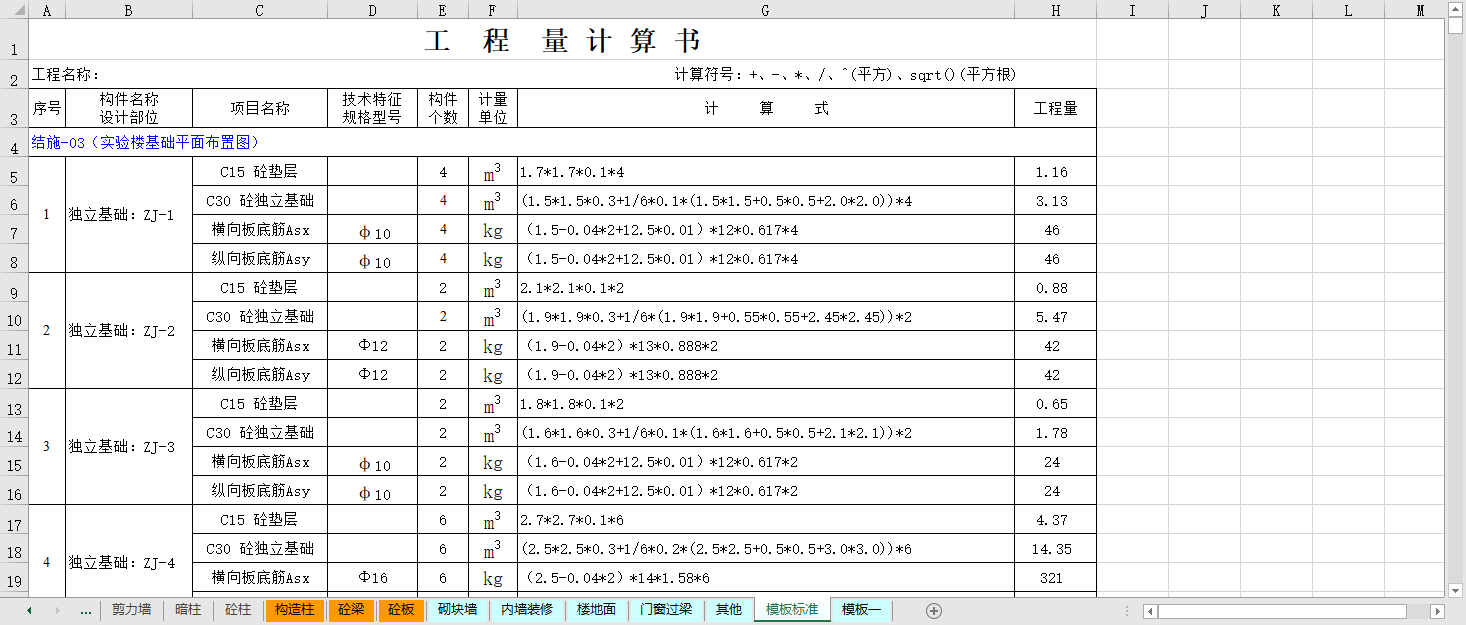 - 工程量自动计算结果表格(新增文字注释上标功能).rar