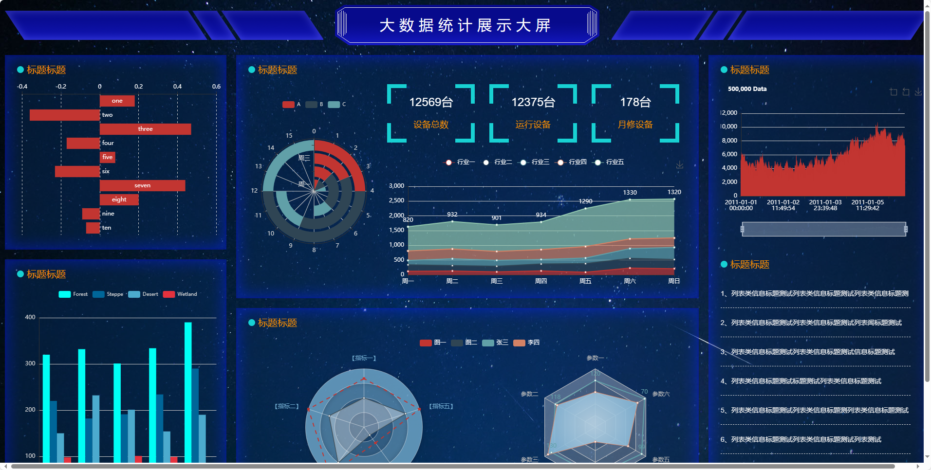 大数据分析主要屏幕模板html智慧物联智慧物流智慧运维设备环境监测新能源车联网综合大