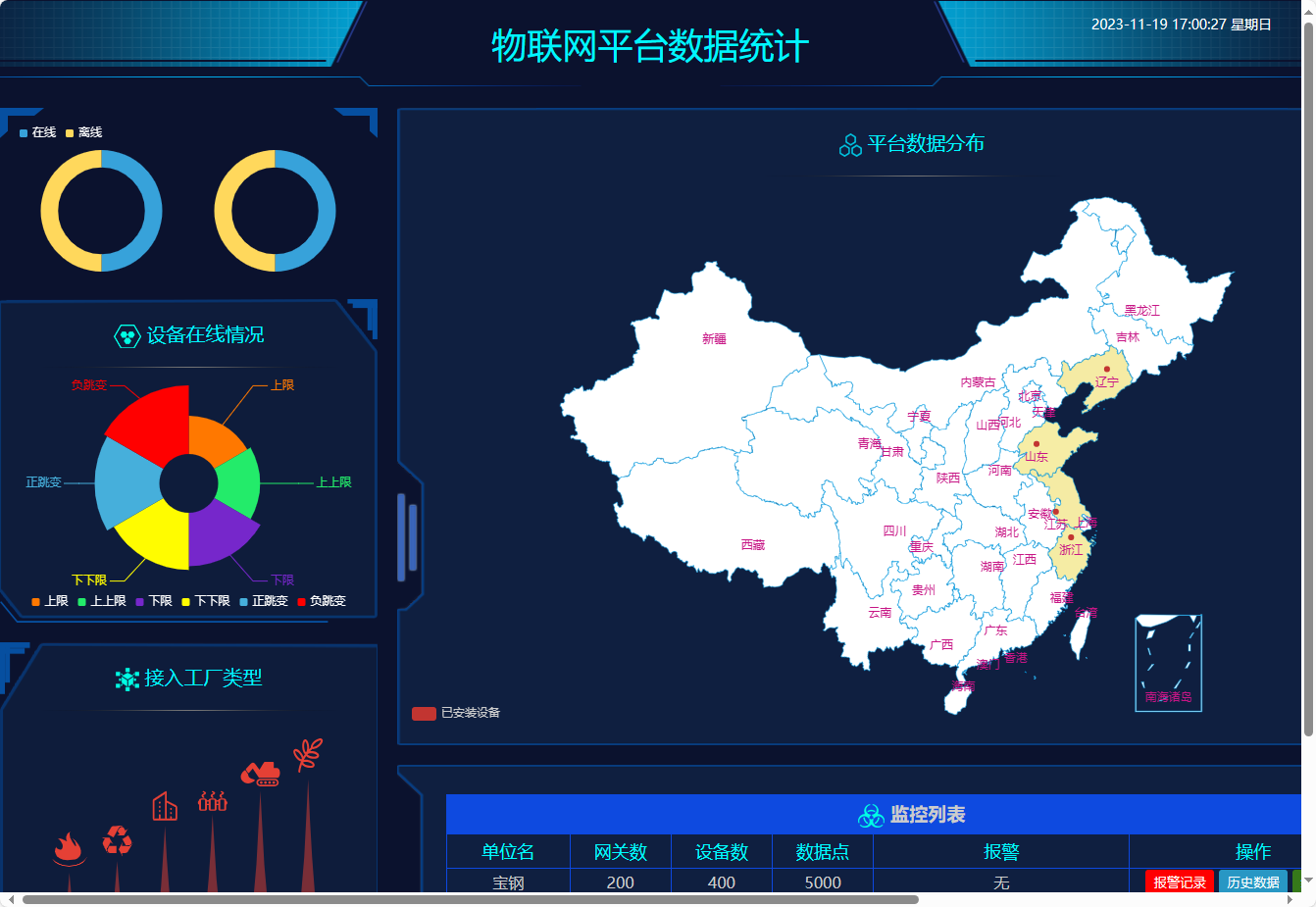 大数据分析主要屏幕模板html智慧物联智慧物流智慧运维设备环境监测新能源车联网综合大数据平台大
