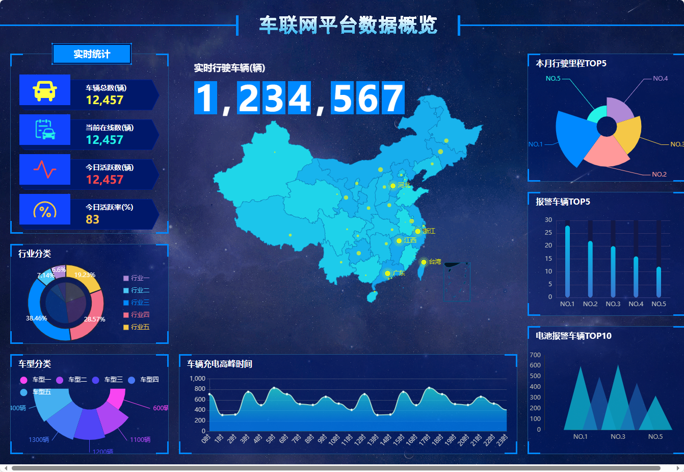 大数据分析主要屏幕模板html智慧物联智慧物流智慧运维设备环境监测新能源车联网综合大数据平台