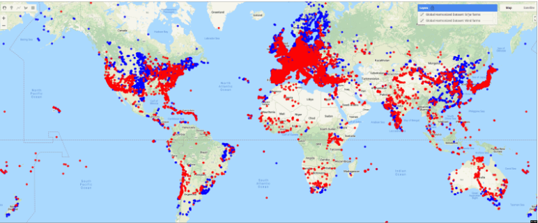 能源系统需要去碳化,以便将全球变暖限制在安全范围内。虽然全球土地规划者承诺将更多地球上的有限空间用于风能和太阳能光伏发电,但关于目前基础设施的位置的信息却很少。最近的研究大多使用土地对风能和太阳能的适用性,加上技术和社会经济限制,作为实际位置数据的替代。
