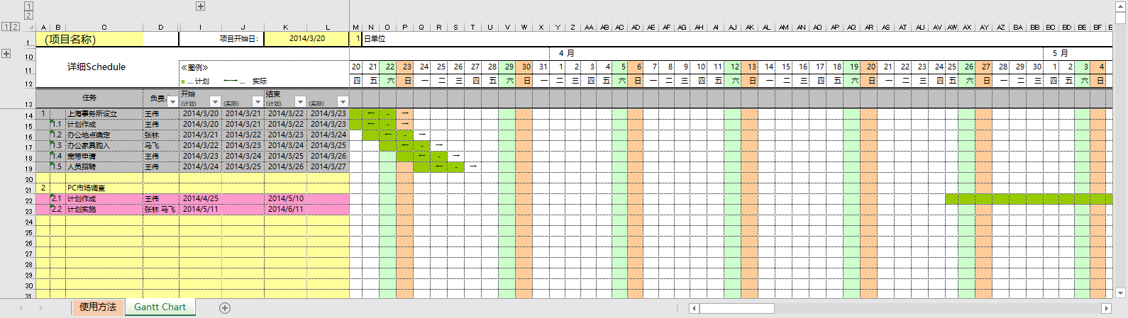 30多个甘特图Excel模板项目管理工作进度培训进度计划安排等