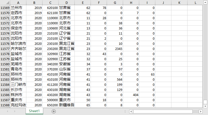 地区 年份 城市代码 所属省份 省份代码 高技术行业企业数量 中高技术行业企业数量 中低技术行业企业数量 低技术行业企业数量