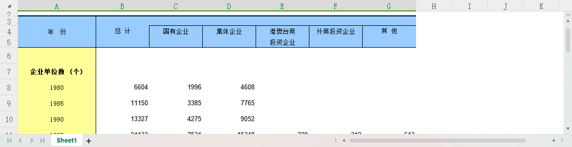 (各年度)表头信息大致如下: