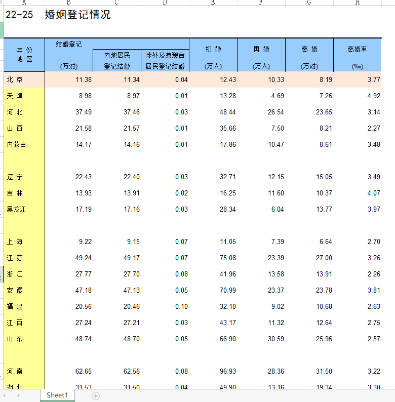 您好,您反映的“离婚对数都是错的北京 2020 年离婚对数您好,收到用户 凤梨酥好好吃是 76134 对,材料提供的是 8.19 万对”,已查阅中国统计年鉴PDF版本22-25,数据准确,统计口径不同会有差别,但是数据来源和提供数据是无误的。