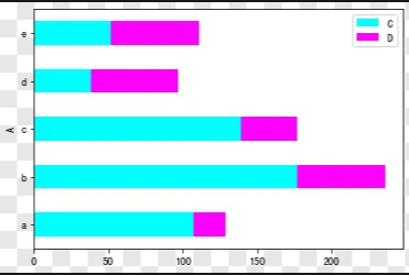 df.head(5).plot.barh(stacked = True,colormap='cool')