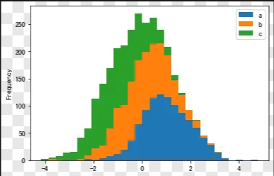 df2.plot.hist(stacked = True,bins = 30)