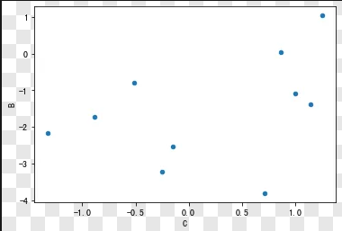 df = pd.Datafr ame(np.random.randn(10,2),columns = ['B','C']).cumsum()
