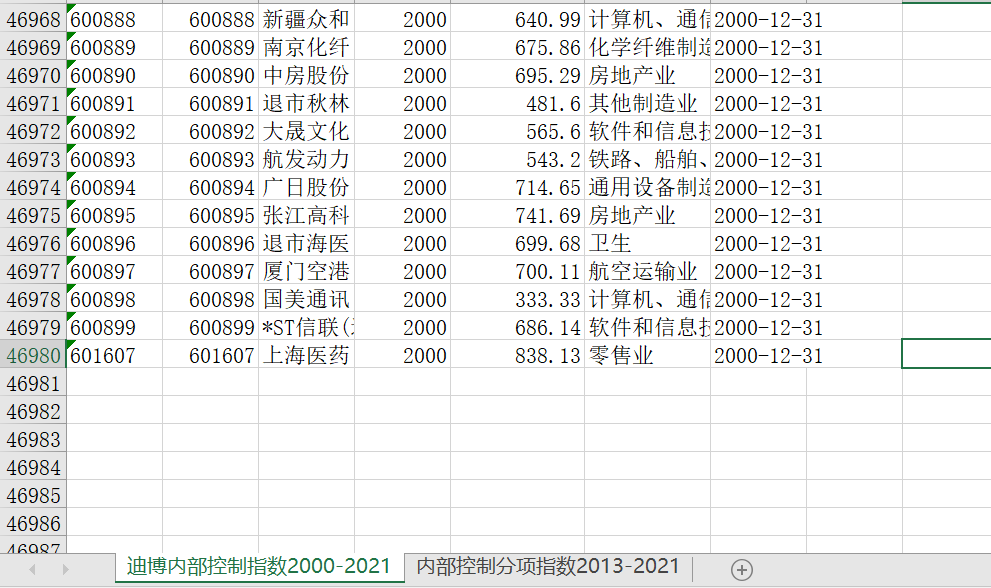 2000-2021年迪博内部控制指数及分项指数数据.xlsx